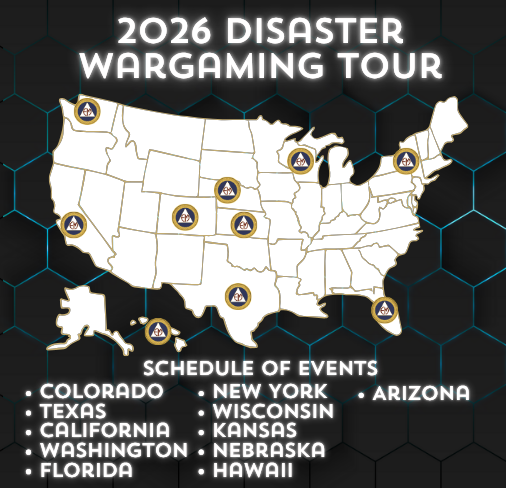 See our event schedule below! Every year we are traveling to different states and events across the U.S. spreading the news about Disaster Wargaming and holding training and exercises. Please reach out with any conference requests!