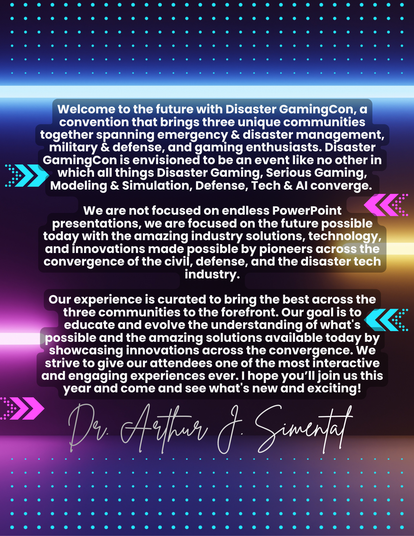 Our primetime programming is all about showcasing the latest innovations and tech across defense, emergency and disaster management, and gaming. Featuring curated panels and live tech demos from industry and organizational leaders showcasing the cutting edge of their fields. More details coming soon!